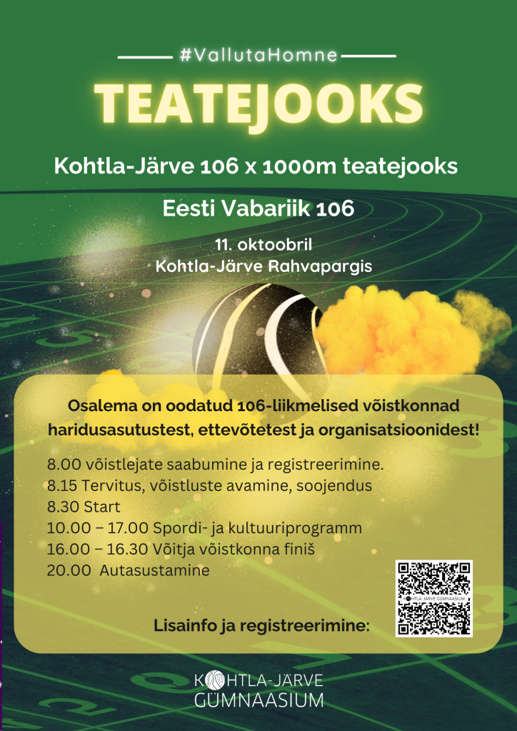 11.oktoobril toimus Kohtla-Järve Rahvapargis suurejooneline jooksuvõistlus 106x1000m teatejooks. Teatejooks on pühendatud Eesti Vabariigi 106. ja Kohtla-Järve Gümnaasiumi viiendale sünnipäevale.