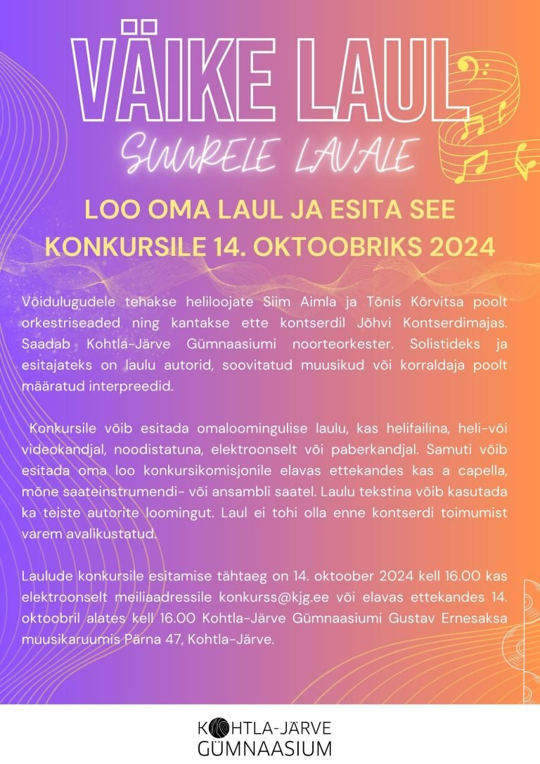 “Kulgeme koos” Muusika ja sõnad: Kohtla-Järve Gümnaasiumi õppe-ja arendusjuht Lilian Reinmets Esitajavad Lilian Reinmets, Otto Enno Kurm ja Annabel Aadumäe Seade: Tõnis Kõrvits |