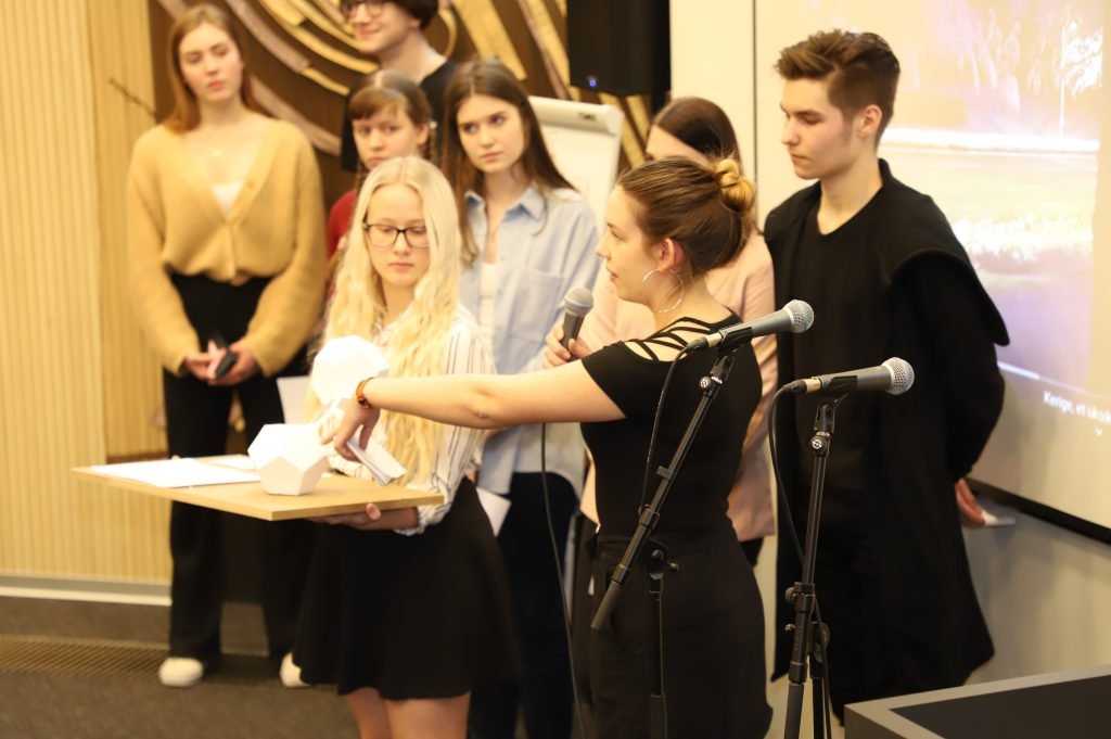 Vahenädala õppetegevused kulmineerusid reedel, mil avasime kõigile huvilistele koolimessi, kus õpilased tutvustasid, millise tulemuseni ühise õppetööga jõuti. Kolme tunni jooksul presenteerisid õpilased enda projekte kooli aatriumis õpetajatele, kaasõpilastele ja külalistele ning Ernst Öpiku auditooriumis toimusid akadeemilised esitlused, mida kuulajad said reaalajas Sli.do keskkonnas tagasisidestada. Kõik õpilased olid protsessi kaasatud ja põnevil kuulama ning saama osa ka teiste õpikogemustest.