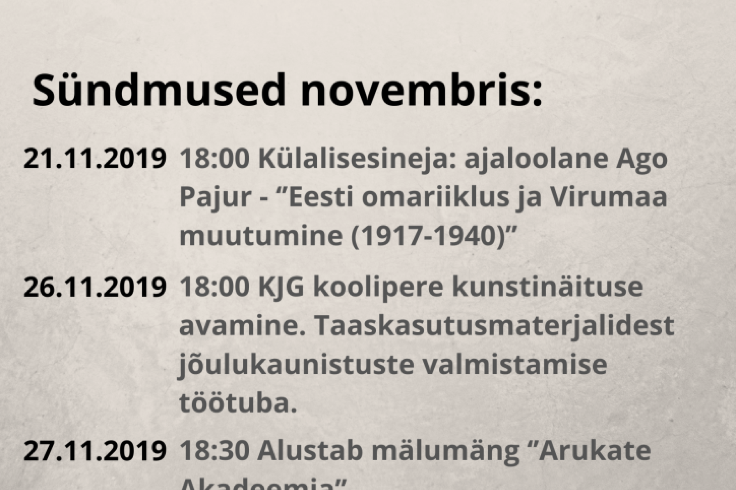 KOHT37 esimene avalik sündmus toimub 21. novembril, mil külla tuleb Tartu Ülikooli ajalooprofessor Ago Pajur ja räägib teemal ‘’Eesti omariiklus ja Virumaa muutumine (1917-1940)’’. Kohvik on avatud sündmuste päevadel kell 17.00-21.00.