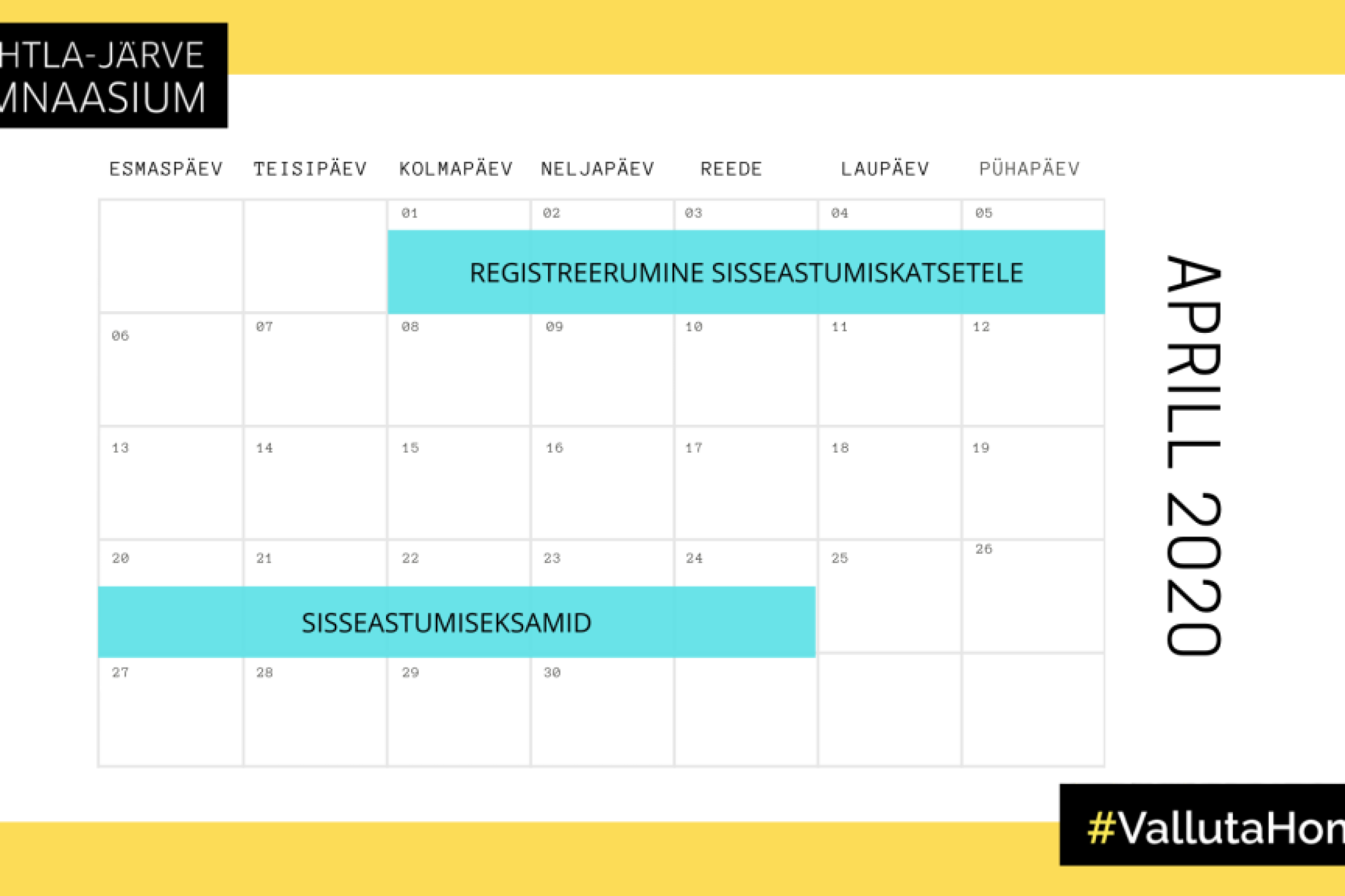 2020/2021 õppeaasta kevadine avalduste vastuvõtt ja sisseastumiskatsetele registreerumine toimub 23. märtsist kuni 6. aprillini 2020 sisseastumisinfosüsteemis SAISlink opens on new page.