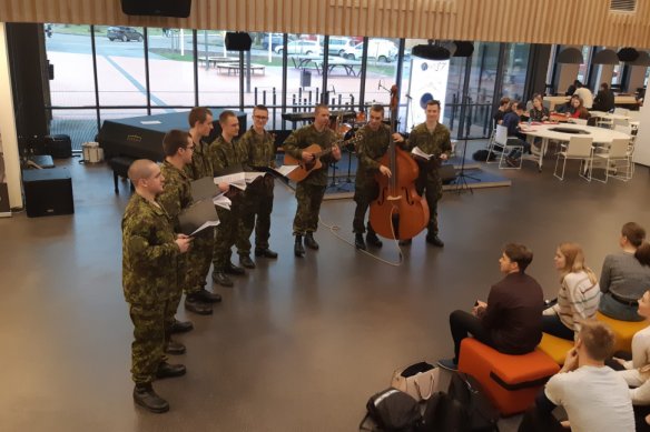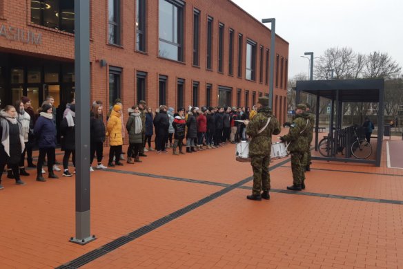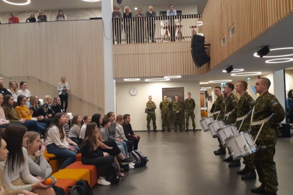 29. jaanuaril, Tartu rahulepingu 100. aastapäeva nädalal külastasid Kohtla-Järve Gümnaasiumit kaitseväe orkestri ajateenijad, kes andsid kooli aatriumis õpilastele meeleoluka kontserdi ning seejärel viisid läbi õppuspäeva meie riigikaitse- ja rivitrummiõpilastele, valmistamaks neid juba ette Eesti Vabariigi 102. aastapäeva väliaktuseks 21. veebruaril! Suured tänud koostöö eest!