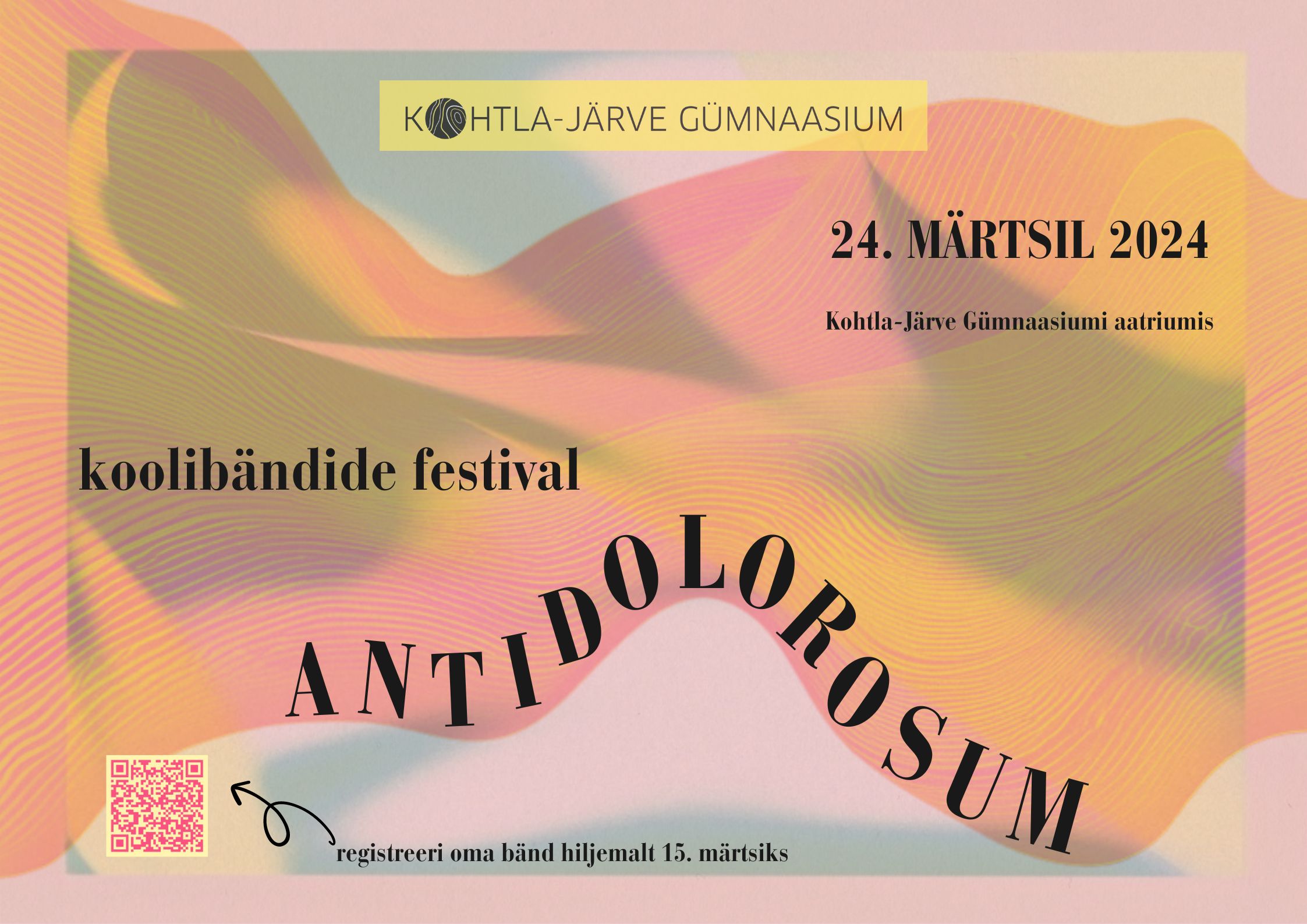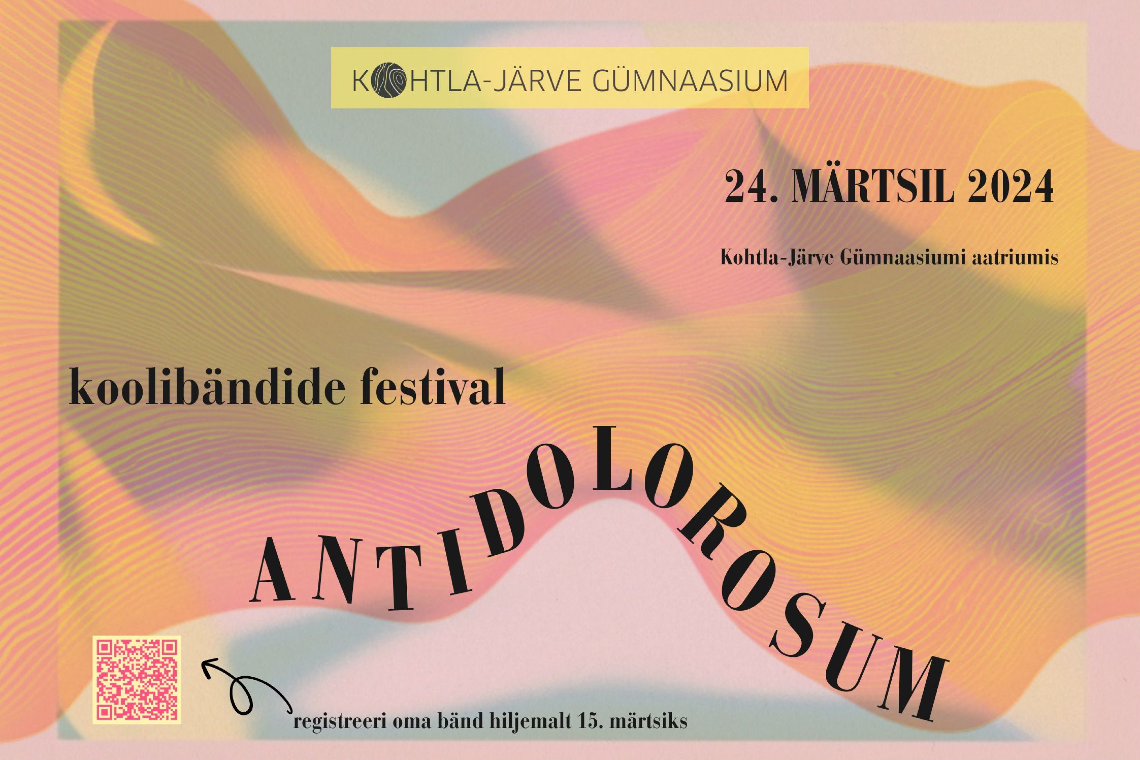 Festivali toimumisest. Üle-eestiline koolibändide festival “Antidolorosum” toimub 24. märtsil Kohtla-Järve Gümnaasiumi aatriumis. Korraldaja poolt on tagatud professionaalne pillide ja vokaali helindamine ning helirežii, korralik PA, pillivõimendused, trummikomplekt, vajadusel ksülofoni, vibrafoni ja percussionide kasutamise võimalus ning elementaarne valgusrežii. Festivalil osalejatele tagatakse ja festivali lõpetamisel kohvilaud. Avatud on aatriumikohvik Koht37.