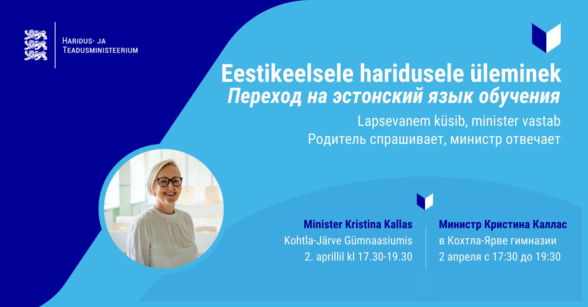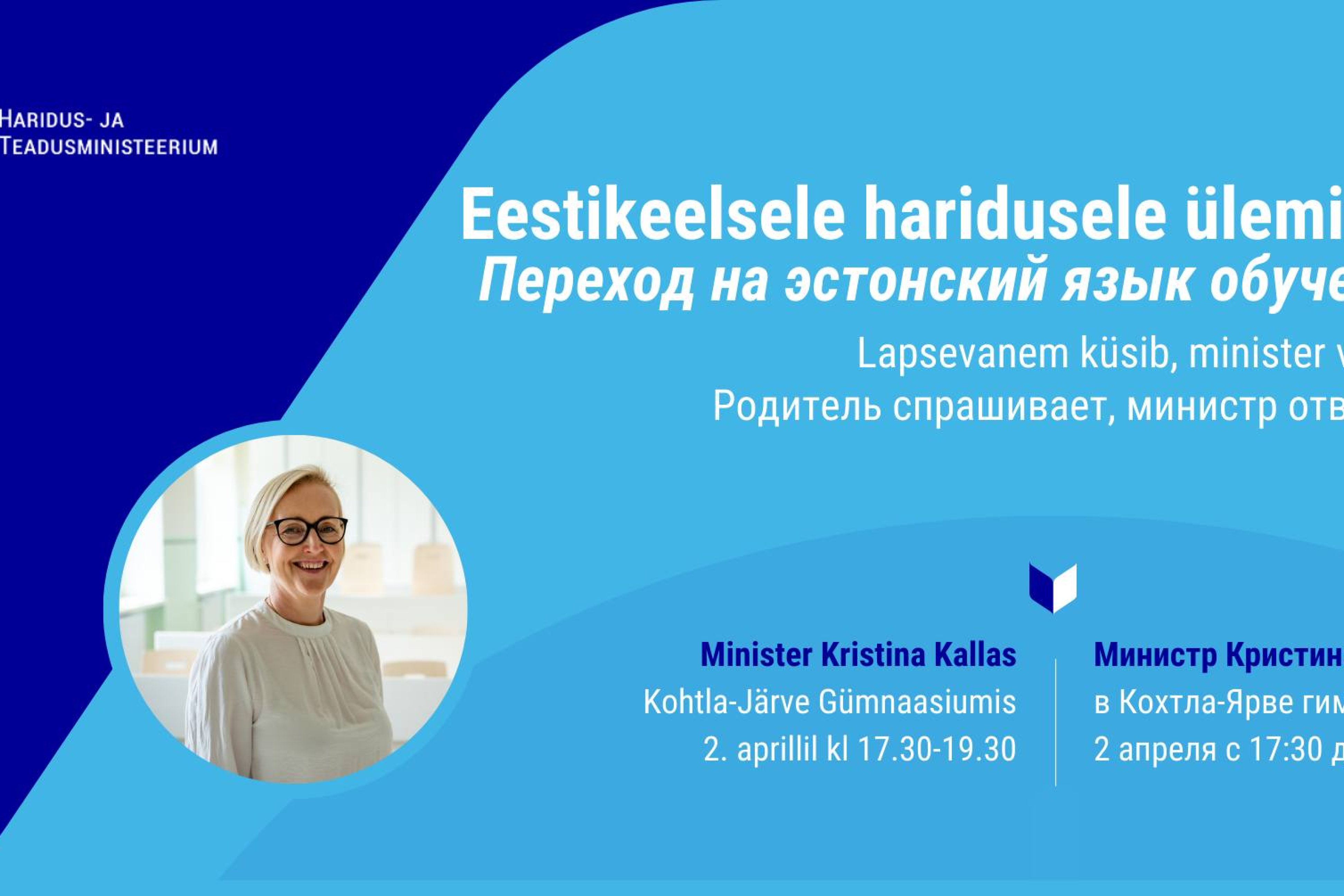 2. aprillil kell 17.30 tuleb Kohtla-Järve Gümnaasiumisse külla haridus- ja teadusminister Kristina Kallas.