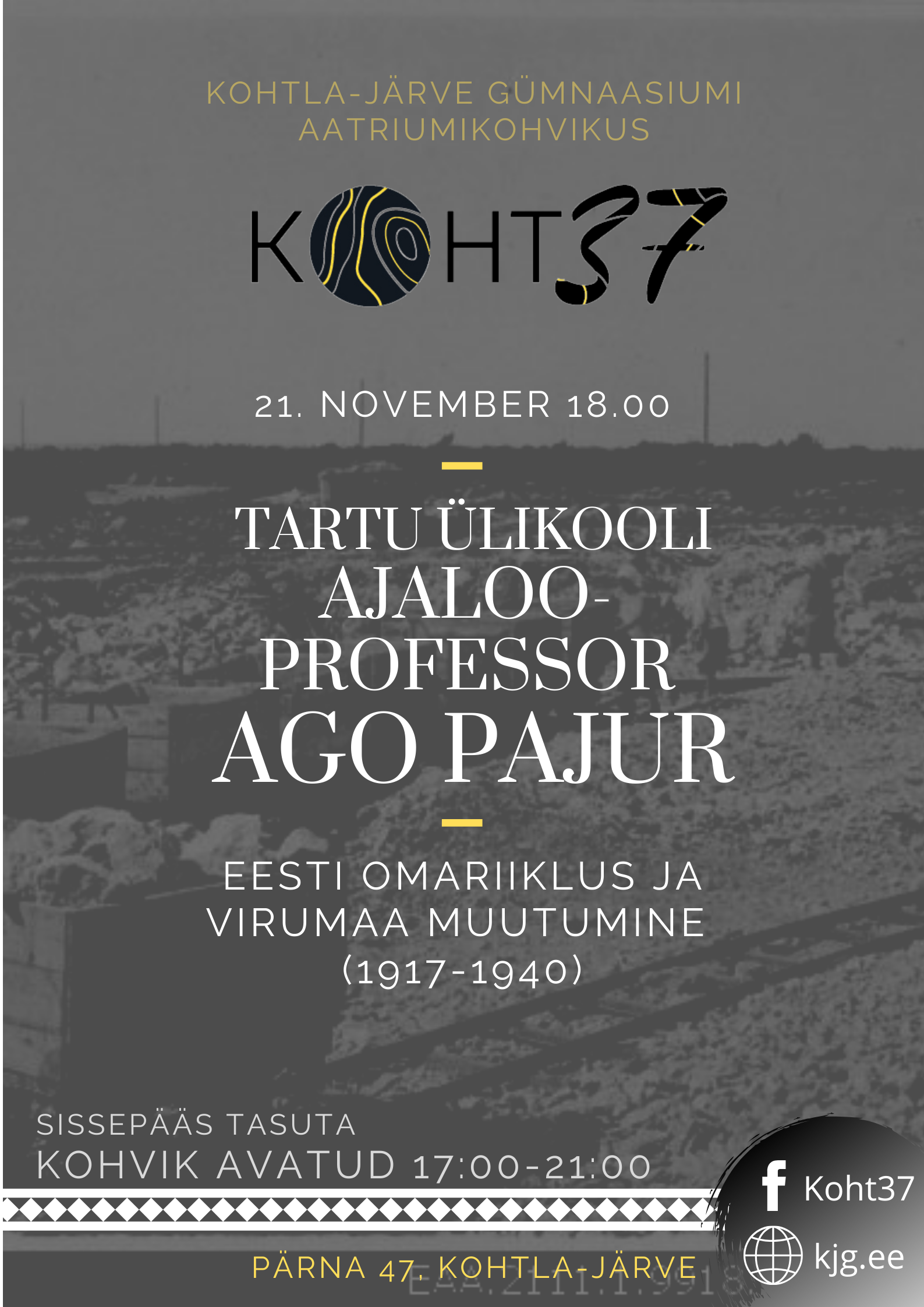 Esimene sündmus toimub 21. novembril kell 18:00, mil külalisesinejana astub üles Tartu Ülikooli ajalooprofessor Ago Pajur ja räägib teemal ‘’Eesti omariiklus ja Virumaa muutumine (1917-1940)’’. Kohvik on sündmuse päeval avatud kell 17.00-21.00, osalemine on kõigile tasuta!