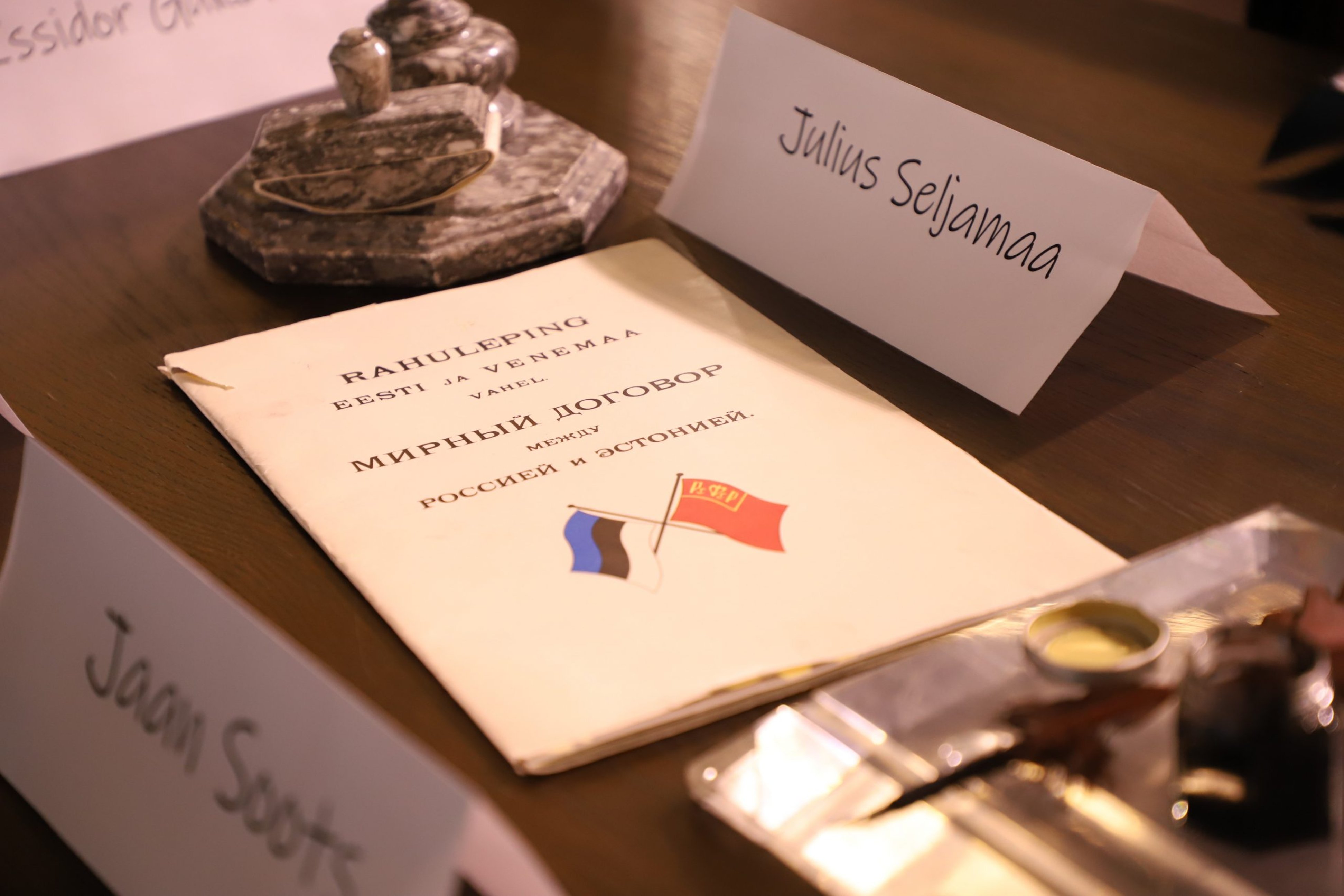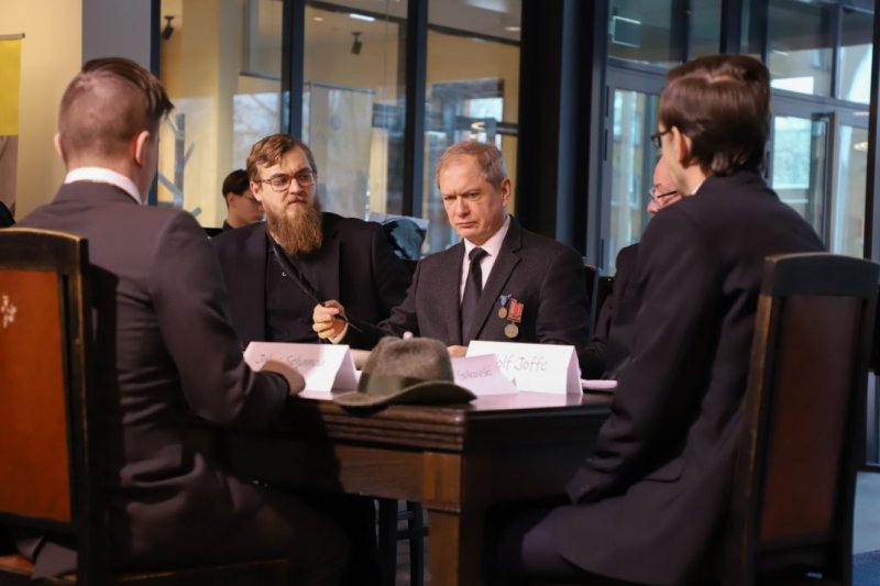 Kohtla-Järve Gümnaasiumi õpetajad kehastusid 30. jaanuari hommikul vahetunnis Tartu rahu läbirääkijateks. Seitse meest eesotsas Eesti delegatsiooni Jaan Poskaga, kelle rolli täitis kooli direktor Hendrik Agur, arutasid rahulepingu tingimuste üle.