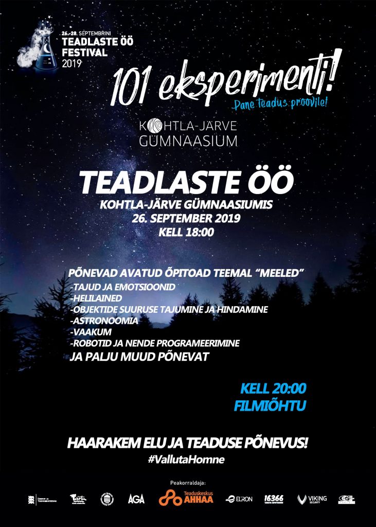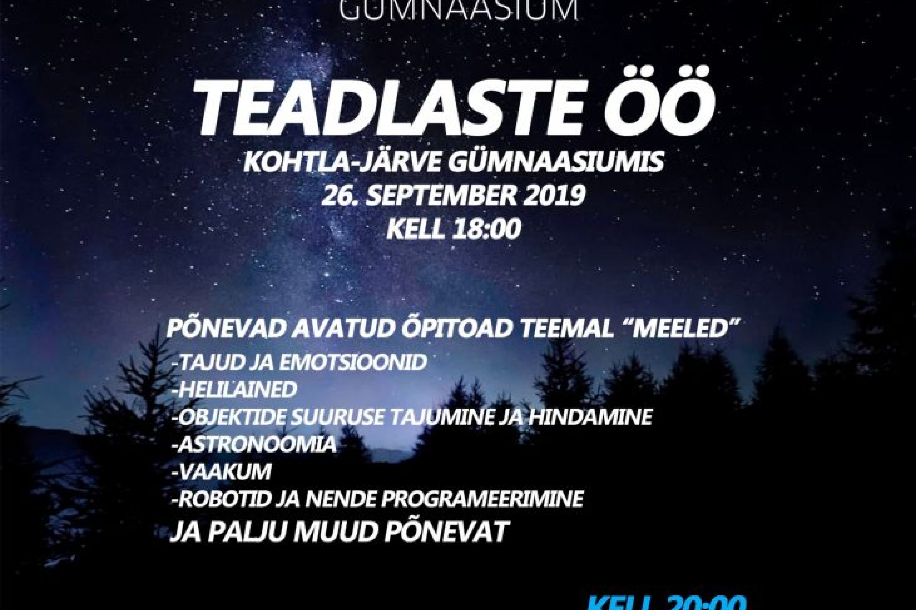 Üleriigilise teadlaste öö festivali raames toimuvad Kohtla-Järve Gümnaasiumis 26. septembril kell 18:00 põnevad avatud õpitoad teemal ”meeled” meie oma õpetajatelt!